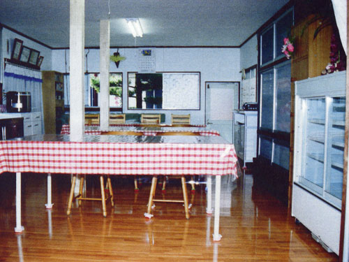 下原荘の食堂は24畳の広さがあり、清潔で、ゆったりとした空間です。楽しい食事ができます。
