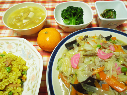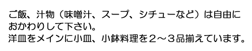 ご飯とお味噌汁は食べ放題です。夜間の学生さんや部活やゼミなどで食事が遅くなる人にも対応できます。毎日の食事は健康の基礎で、生活の楽しみでもあります。豊富なメニュー、栄養のバランス、学生さんの好みを考え、手作りで調理しています。ボリュームも有ります。おいしく召し上がって下さい。